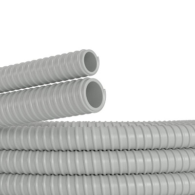 Труба гофрированная ПВХ гибкая легкая d25мм с протяжкой сер. (уп.25м) DKC 9192525