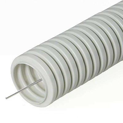 Труба гофрированная ПВХ легкая d25мм с протяжкой сер. (уп.75м) Урал Пак ГФ-0100725-075