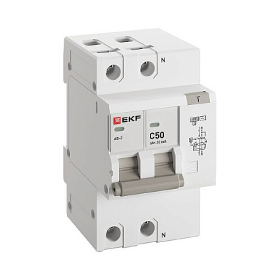 Выключатель автоматический дифференциального тока C 50А 30мА тип AC 6кА АД-2 (электрон.) защита 270В PROxima EKF DA2-6-50-30-pro