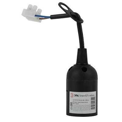Патрон E27 с клеммной колодкой пластик черный (50/200/6000) Эра Б0043677