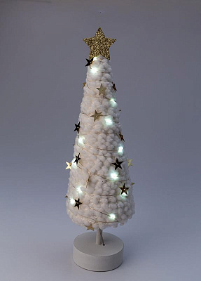 Светильник настольный "Елка" дизайн 2 (белое основание золотая звезда) 20LED плюш 11.5х38.5см тепл. бел. КОСМОС KOC_TAB-B105