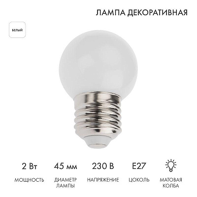 Лампа светодиодная 2Вт шар d45 5LED тепл. бел. E27 Neon-Night 405-116