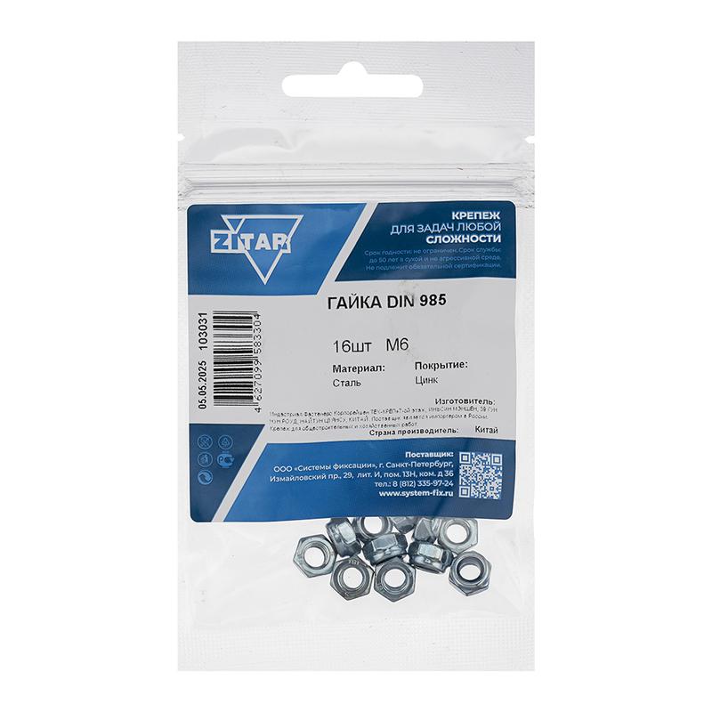 Гайка самоконтрящаяся М6 DIN 985 цинк. (пакет) (уп.16шт) Tech-Krep/Zitar 103031