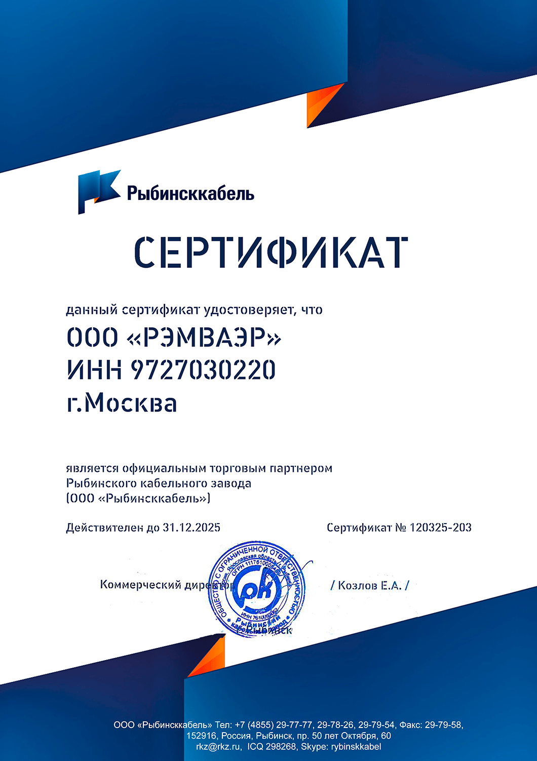 Кабель силовой КГ-ХЛ 3x2,5 220/380-3 - Рыбинсккабель |
