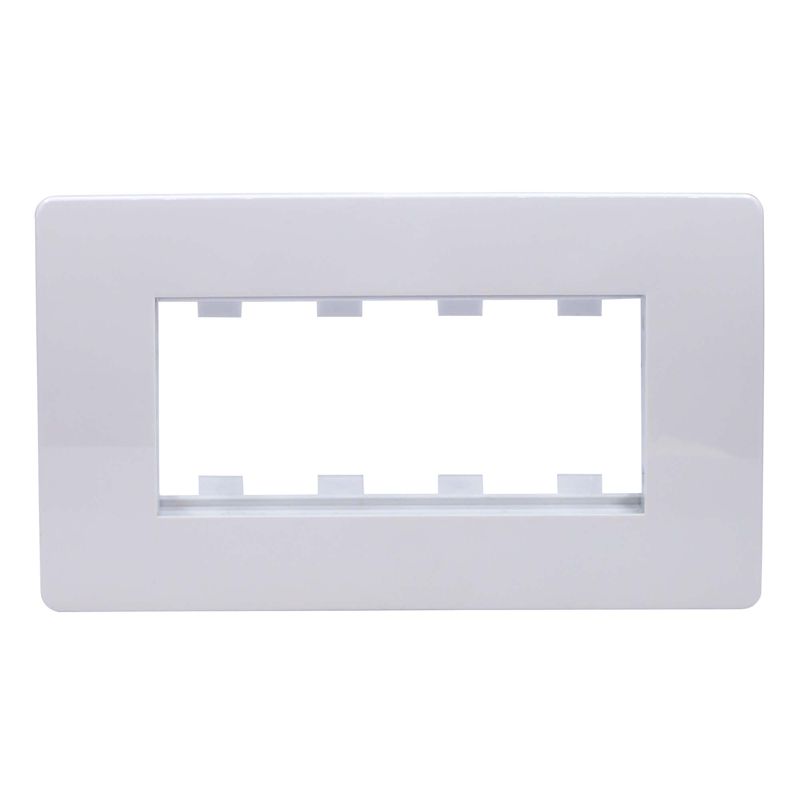 Каркас в сборе с рамками под 4 модуля электроустановочных изделий "Viva". Назначение: организация рабочего места. Условия монтажа: электроустановочное изделие серии "Viva" монтируется в каркас защелкиванием; каркас в коробку монтируется саморезом; рамка на каркас – защелкиванием. Характеристики: материал – АБС-пластик. Комплектация: каркас; рамка. Цвет белый