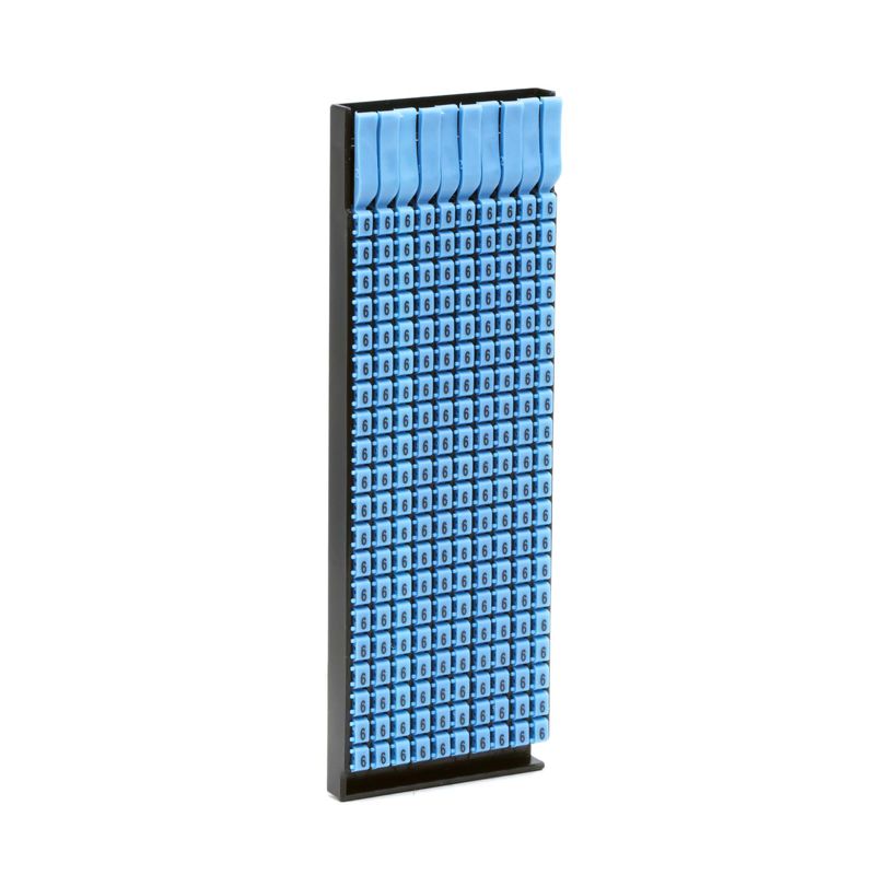Ручная маркировка системы MARK 3 для маркировки проводов без разъединения электрической цепи из полиамида 6.6. Температура эксплуатации от –40 до +100 °С. Боковые штифты надежно фиксируют соединение друг с другом и позволяют добиться точного выравнивания маркеров. Цвет маркеров соответствует международной кодировке. Символ "6" черным цветом на голубом маркере для сечения провода 0.5-1.5 мм2. 200 маркеров в упаковке.