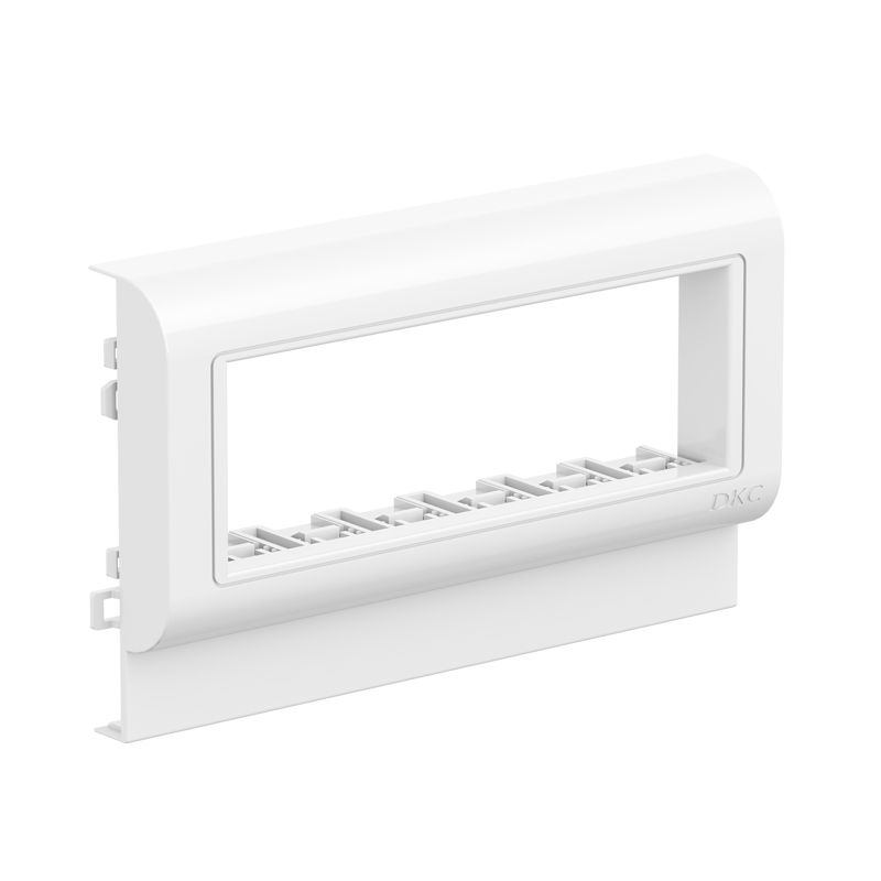 Рамка-суппорт на 6 модулей, PDA-3BN. Назначение: организация рабочих мест - монтаж электроустановочных изделий в пластиковые короба, тип TA-GN серии "In-liner Classic". Монтаж: монтаж суппорта внутри короба с помощью защелкивания, монтаж электроустановочных изделий в рамку - защелкиванием снаружи. Характеристики: материал – АБС-пластик и поликарбонат. Комплектация: рамка; суппорт. Типоразмер короба: 100х40, 100х60, 100х80. Цвет: белый