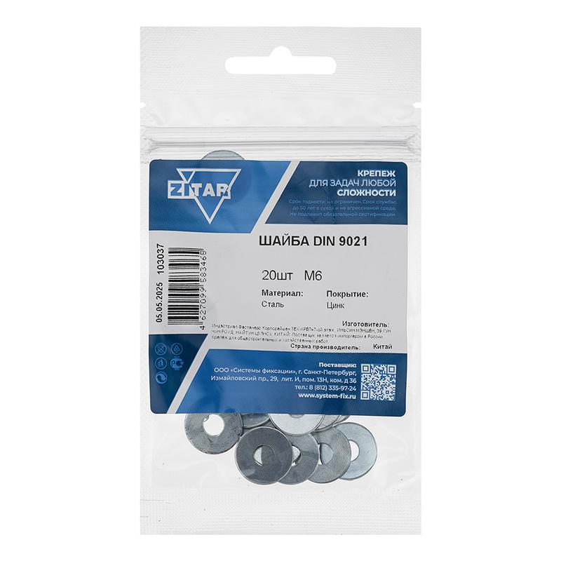 Шайба кузовная М6 DIN 9021 цинк. (пакет) (уп.20шт) Tech-Krep/Zitar 103037