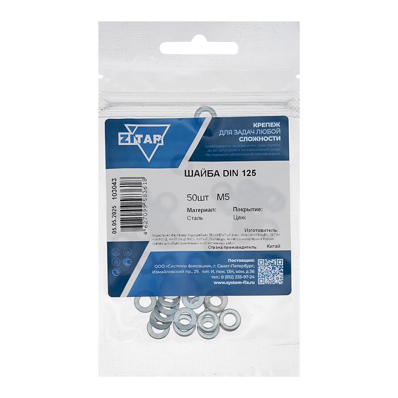 Шайба плоская М5 DIN 125 цинк. (пакет) (уп.50шт) Tech-Krep/Zitar 103043