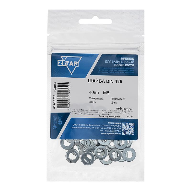 Шайба плоская М6 DIN 125А цинк. (пакет) (уп.40шт) Tech-Krep/Zitar 103044