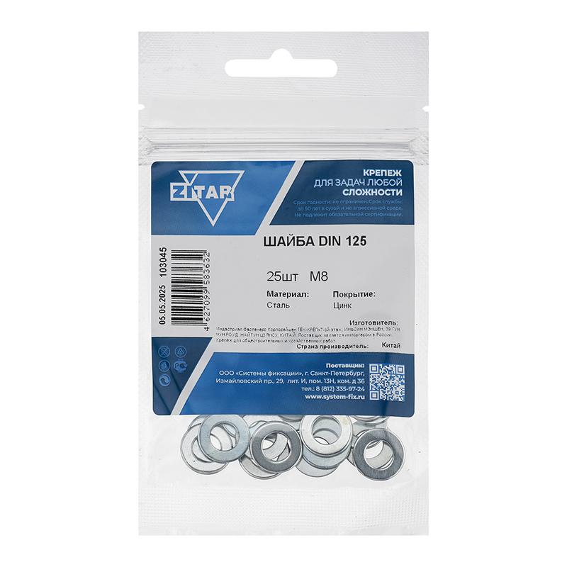 Шайба плоская М8 DIN 125 цинк. (пакет) (уп.25шт) Tech-Krep/Zitar 103045