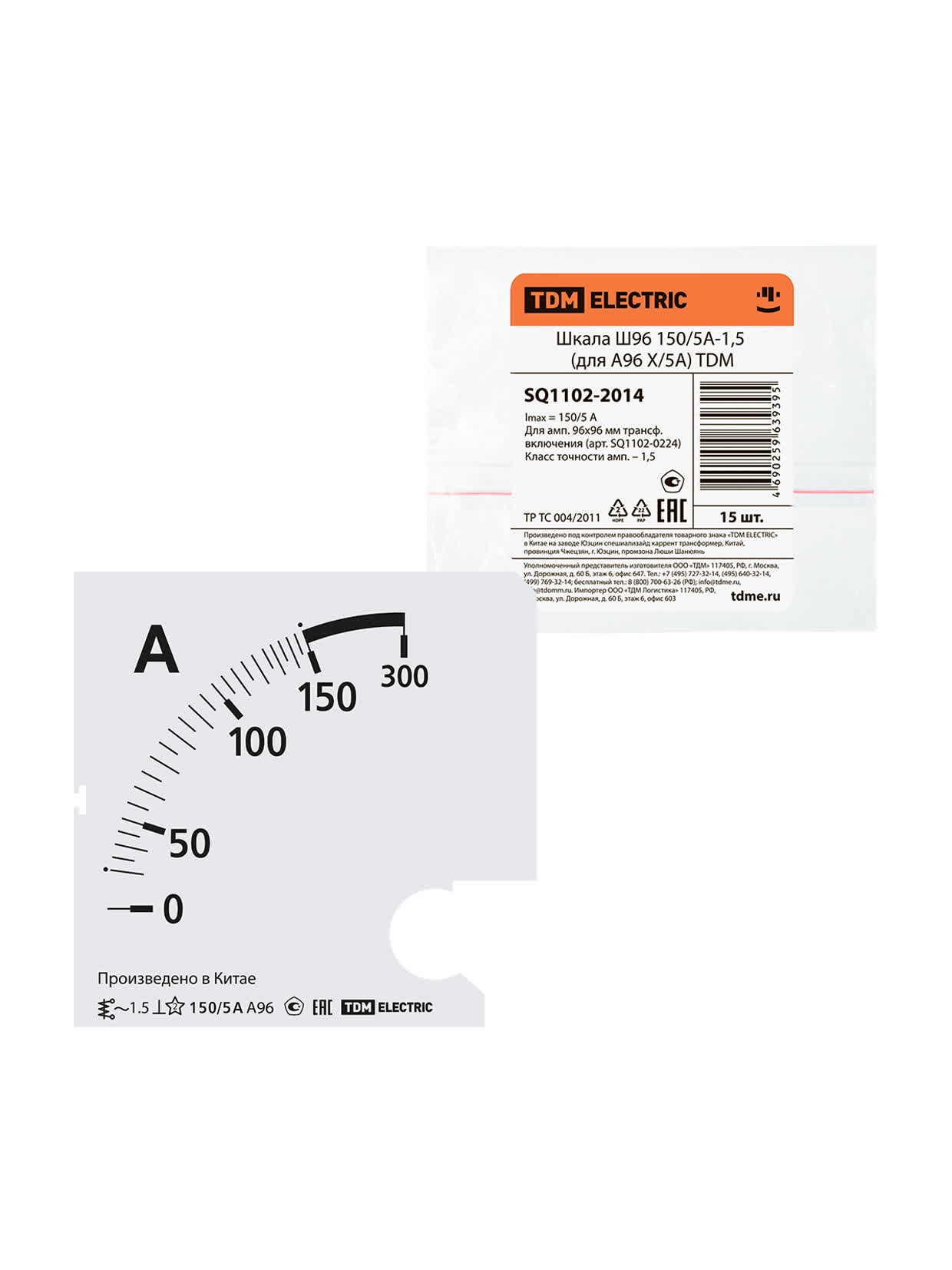 Шкала Ш96 150/5А-1,5 (для А96 Х/5А) TDM SQ1102-2014 |