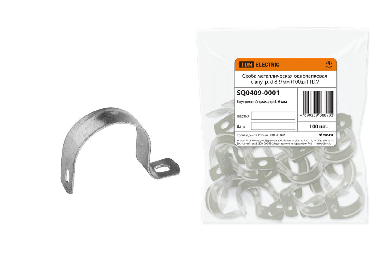 Скоба металлическая однолапковая d8-9 мм TDM SQ0409-0001 |