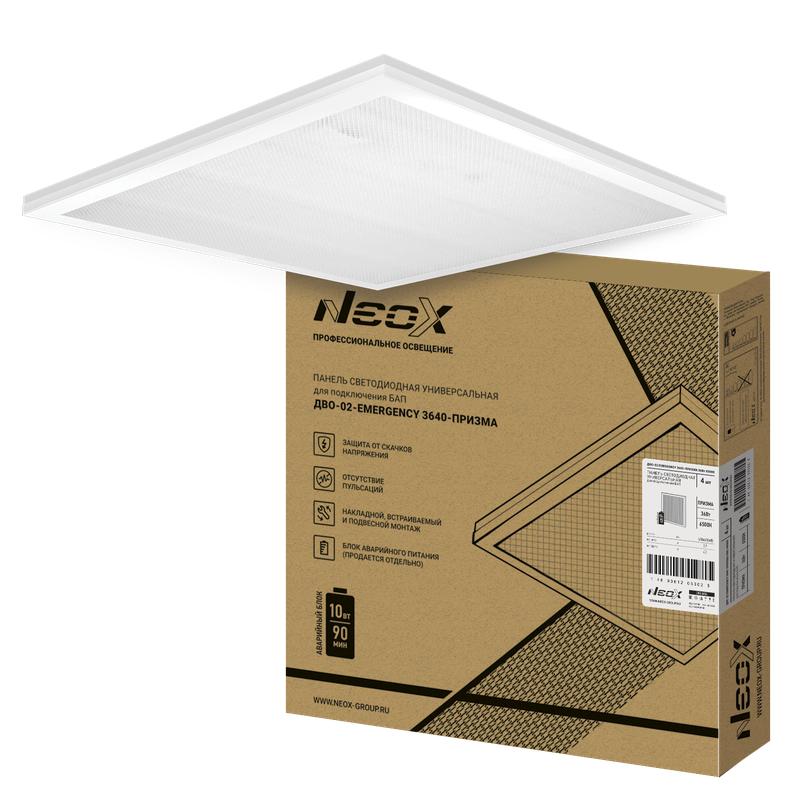 Светильник светодиодный ДВО-02-EMERGENCY 3640-ПРИЗМА 36Вт 4000К 595х595х19 без БАП-10W90 универс. панель NEOX 4690612053011