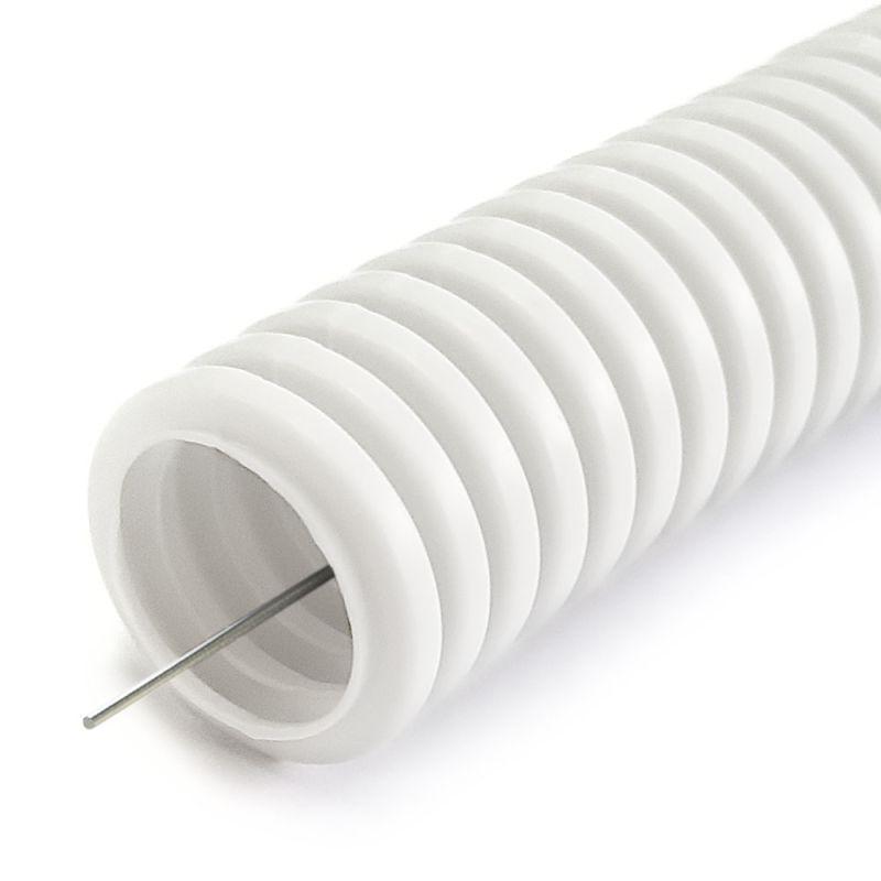 Труба гофрированная ПЛЛ легкая d16мм с протяжкой безгалоген. (HF) (НГ) бел. (уп.100м) Промрукав PR02.0214