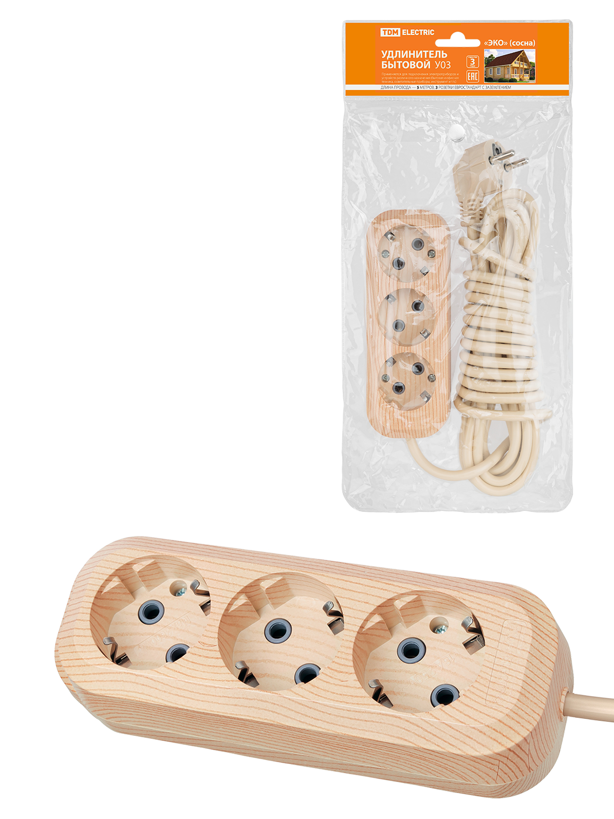 Удлинитель бытовой У03 (3 гнезда, 5 метров, 2П+3, ПВС 3х1мм) 16А/250В TDM SQ1303-2002 |