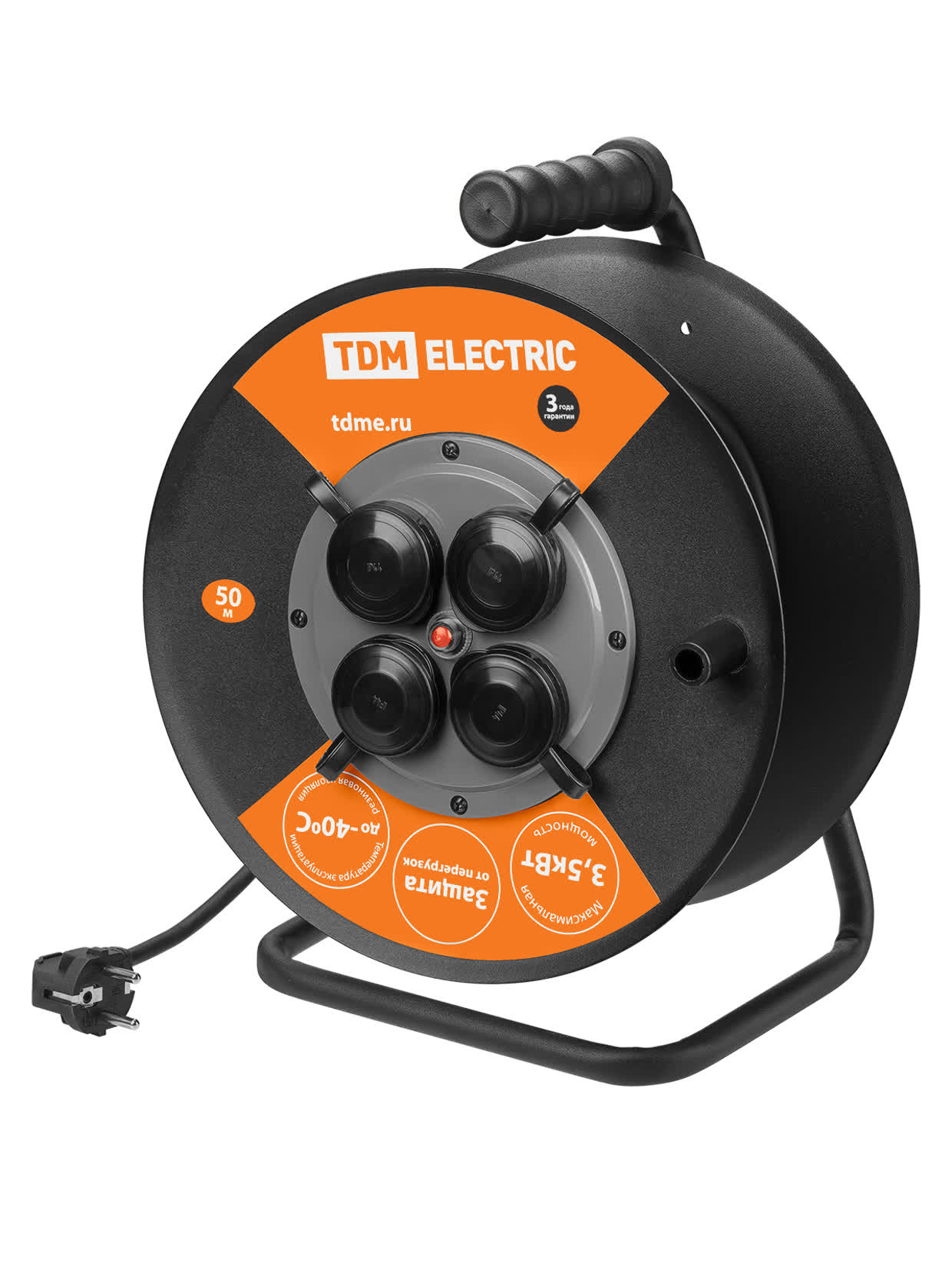 Удлинитель силовой УХз16-004 (метал. катушка, А3, 4 места IP44/50м КГТП-ХЛ 3х2,5) TDM SQ1301-0172 |