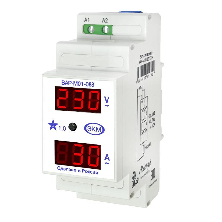 Вольтамперметр цифровой ВАР-М01-083 AC20-450В УХЛ4 20 до 450В и тока от 0 до 63А 2 модуля Меандр A8302-19912127